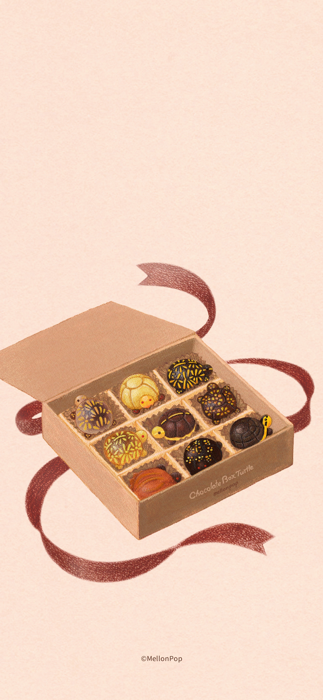 模様も形も様々な、個性豊かなハコガメ達の姿をかたどった、チョコレートボックスが出来ました。