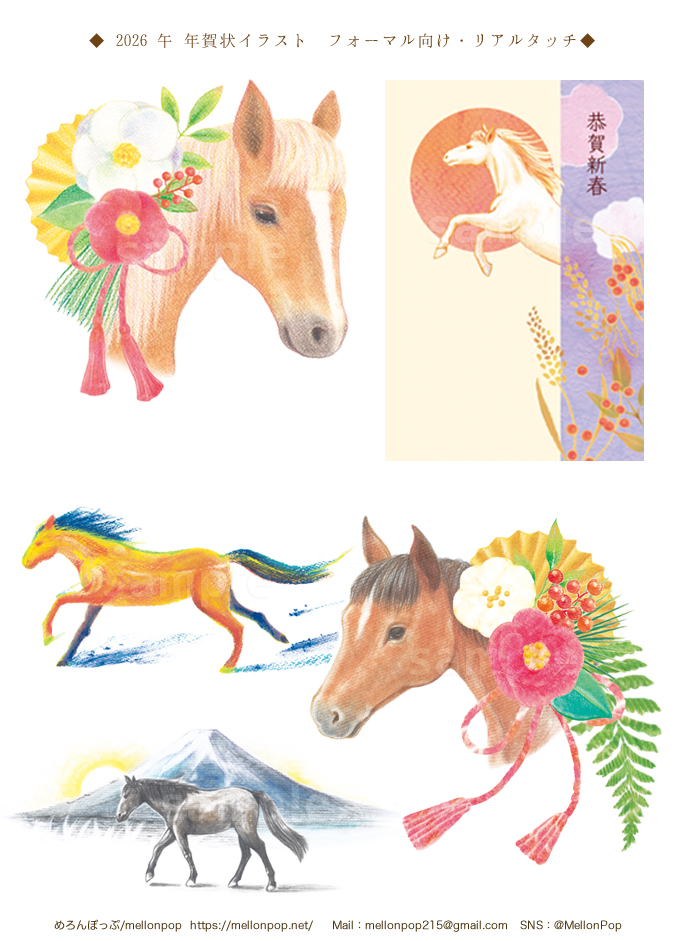 目上の方に向けたフォーマルなリアルタッチから、親しい方に向けたポップで可愛らしいデザインまで、ご要望に合わせて幅広く制作いたします。